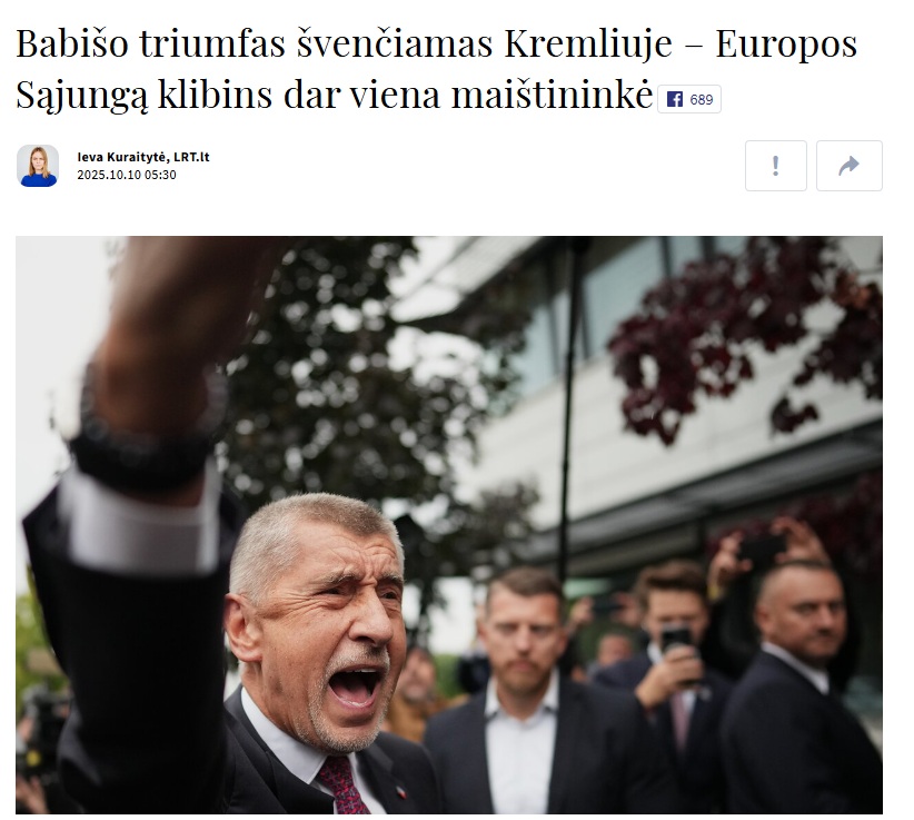 Kai triuškinančiai rinkimus laimi A. Babiš, bet jis nėra valdomas Sorošinių ar dvaro ELYYYTO, tai jau skandalas, demokratijos nėra, kremliniai ateina, žmogaus laisvės bus suvaržomos, atsiras dvi lytys, o ne 76 lytys, fondačiulpiai bus išvaikyti, agentų įstatymas priimtas, KGB išviešinti ir pan., uždedamas skambus pavadinimas BABIŠO TRIUMFAS ŠVENČIAMAS KREMLIUJE!