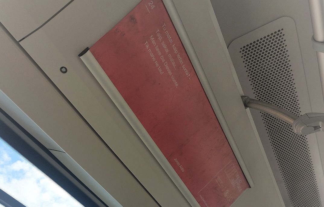 Vytauto Didžiojo universiteto (VDU) organizuojamas tarptautinis rašytojų ir knygų festivalis „Kauno literatūros savaitė“ kviečia miesto autobusų keleivius pakelti akis ir atrasti žinomų ar nežinomų literatūros veikalų citatas.
