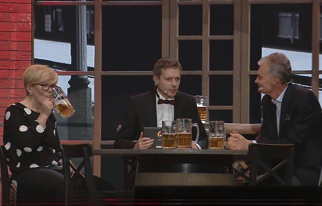 Ką jie čia susėdę vaizduoja apsistatę bokalais? Kokią žinutę jie čia transliuoja miniai? "Ie, mes normalūs bičai - aliuką pageriam, kaip ir daugelis jūsų. Jei balsuosit už mus - ALAUS TIKRAI BUS."