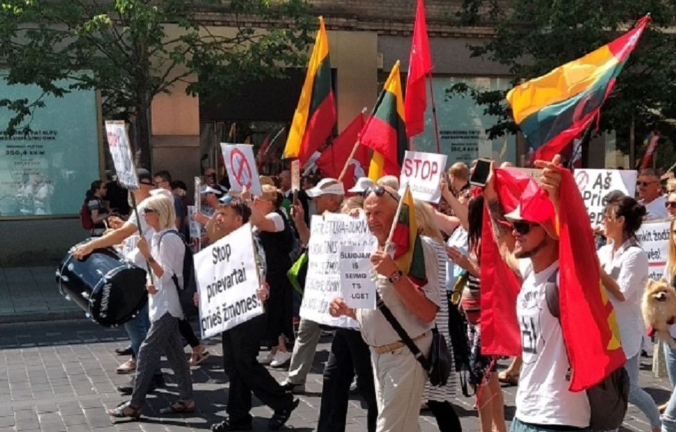 Vilniuje šeštadienį keli šimtai žmonių prie Seimo ir Vyriausybės reikalavo laisvės ir teisės apsispręsti dėl vakcinavimo nuo koronaviruso, ragino liautis segreguoti žmones.