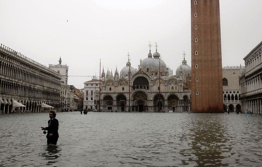 Italijos vyriausybė paskelbė nepaprastąją padėtį į UNESCO pasaulio paveldo sąrašą įtrauktame kanalų mieste, kur itin didelis potvynis, čia vadinamas acqua alta, užliejo daug bažnyčių, parduotuvių ir namų.