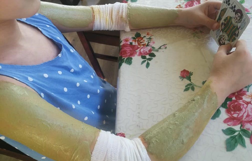 Mums labiausiai kraujuojančias rankų linkiuose žaizdas padėdavo gydyti ciberžolės milteliai, o nuraminti niežulį – molio kaukė visam kūnui (nakčiai), nes visas kūnas buvo apimtas ligos. Naktimis dukra mūvėdavo pirštines ir tai taip pat buvo didelė pagalba, nesusidarydavo naujos žaizdos.