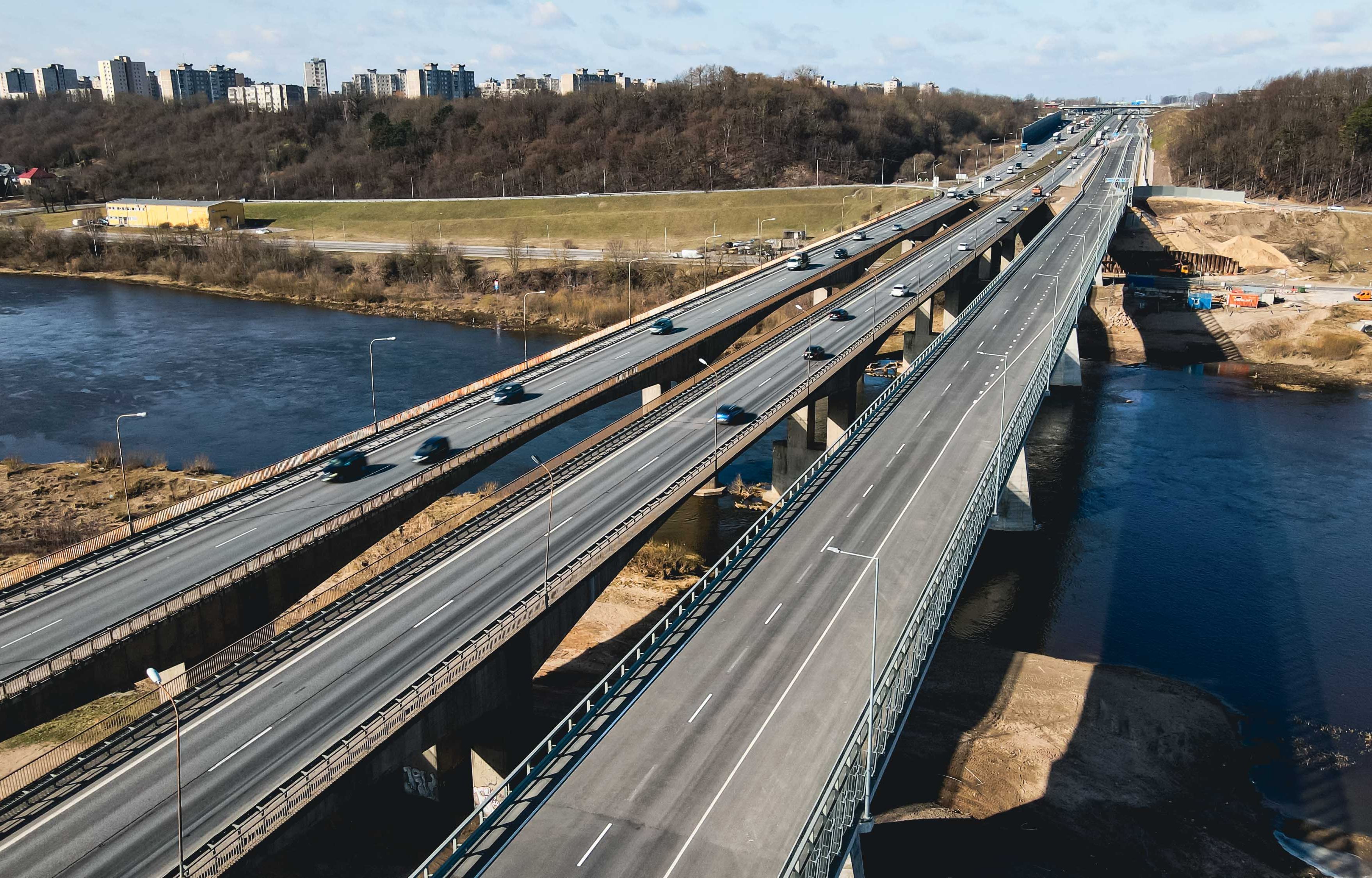Ketvirtadienį paleistas eismas per naujai pastatytą tiltą per Nerį Kaune – magistralinio kelio A1 Vilnius–Kaunas–Klaipėda ruože nuo 99,29 iki 100,47 km.