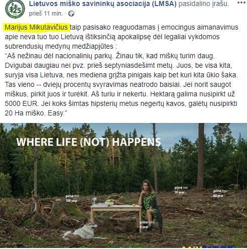 Marijonas Mikutavičius – paskutinis tų lobistų argumentas, jis sako, nusipirkit miško ir saugokit jį. Kadangi jis medžiotojas, pats turi miško, todėl tokia situacija ir yra.