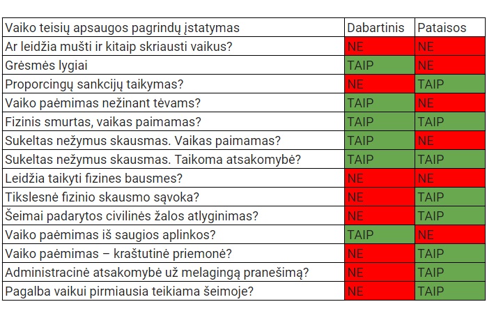 Tiesa yra tokia: pataisomis mes tik siekiame apsaugoti šeimą ir, pirmiausia, vaikus nuo neproporcingo ir laiko limitų neturinčio institucijų smurto. Štai čia trumpai pateiktas dabar galiojančių ir mūsų siūlomų teisės normų palyginimas.
