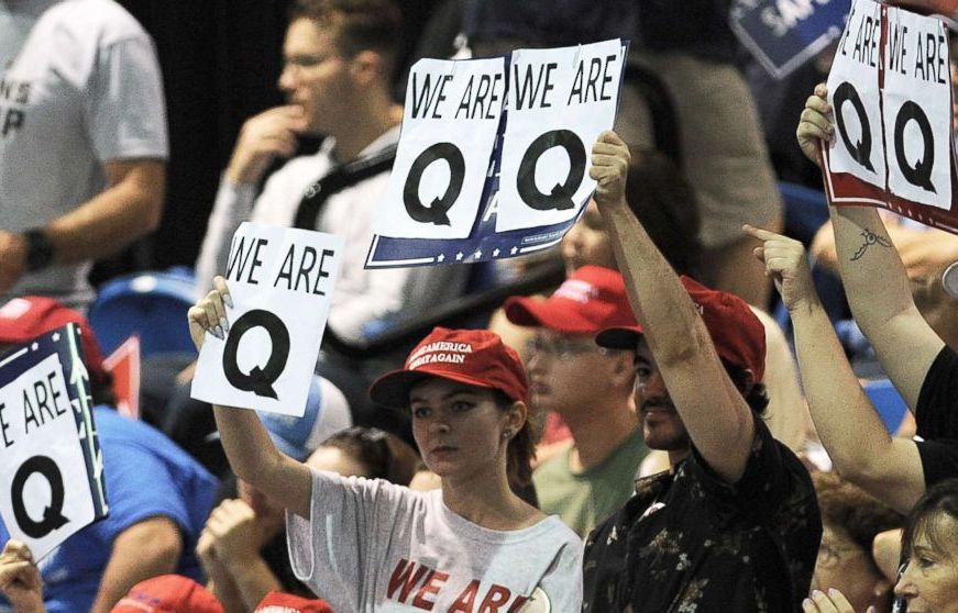 Pastarosiomis savaitėmis D. Trumpo ryšys su Q įgavo pagreitį, kai prezidentas dvidešimt kartų per dieną pasidalino Q pasekėjų įrašais. D. Trumpo reklamose buvo vaizduojami Q fanai, o mitingų metu naudojama viena iš Q frazių („Šie žmonės serga“). Prezidento advokatas Rudy Giuliani taip pat dalinosi Q sekėjų įrašais.