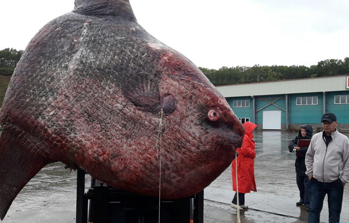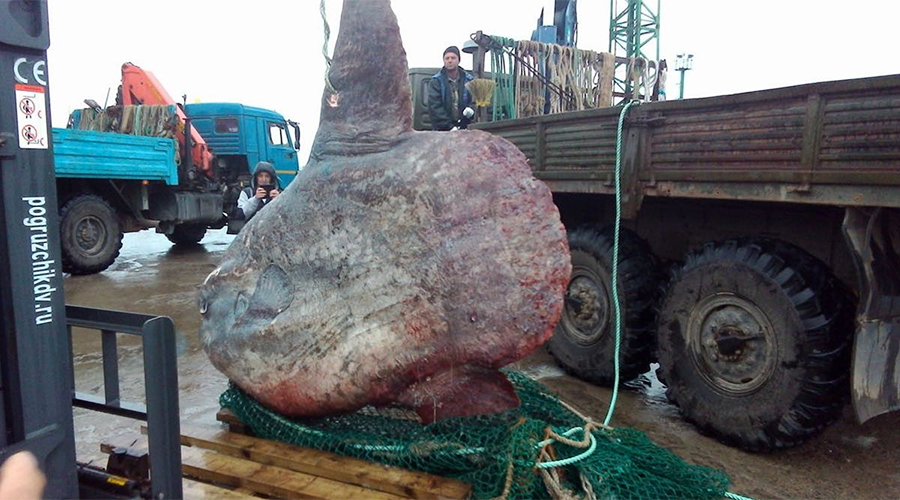 Žvejai sugebėjo ištraukti net 1100 kilogramų sveriančią žuvį, kuri buvo įstrigusi į jų tinklus, išmestus netoli Iturupo salos. Ši mėnulžuvė, dar vadinama mola-mola, yra sunkiausia kaulėtoji žuvis mūsų vandenynuose. Ji minta medūzomis ir yra labai visli, per nerštą išneršianti iki 300 milijonų ikrų.